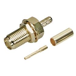 此款具有單個D型安裝孔的母頭穿壁式SMA連接器專門用于使用標準壓接尺寸的易用壓接工具壓接RG174、RG188和RG316同軸線纜:0.128適合壓接套管。中心觸點專門用于焊接。此款50歐迷你型連接器使用螺紋連接機構,因而,它通常適合頻率較高的應用。