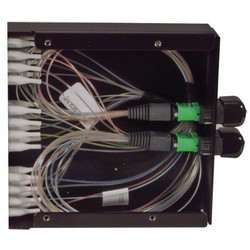 L-com's High Performance, Space Saving, FSP Series MPO Fiber Optic Cassettes, are ideal products for connecting multi-fiber MPO trunk cables and splitting them out to various patch cables. Each cassette comes fully populated internally with pre-terminated and tested MPO breakout cables, and are designed for fast and easy field installation with minimal training. This Multimode Model is designed for OM3 (50/125) 10 Gig "Laser Optimized" applications. Installation consists of mounting the cassettes into any of our FE series Wall Mount, and Rack Mount, Fiber Enclosures, FSP Series Rack Panels, and FSP DIN-Rail Mount Enclosures. Then after plugging in your MPO cable into the MPO-12 port found on the back of the cassette, you can then begin plugging your patch cables into the 24 LC ports on the front of the cassettes. 特征