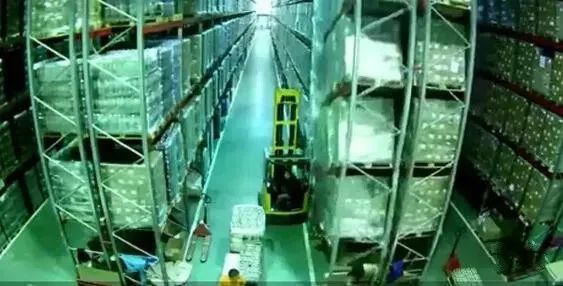 一輛叉車從視頻遠方的倉庫另一頭緩緩行駛過來,當司機駛近鏡頭位置并靠邊停車時。貌似叉車頂棚一角碰上了貨架立柱,沒想到竟然引發了山呼海嘯般地大坍塌,司機也被數以十萬計的紙箱掩埋。