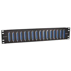 An L-com exclusive, four 19" x 3.5" rack panels are available with 16 shielded D-sub slimline couplers. Color of panel is black. Couplers female to female and fully shielded. Helpful white numbered legend printed 1-16.