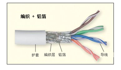 F/UTP – 整體編織屏蔽/雙絞線未屏蔽:線纜整體編織屏蔽,4對雙絞線未屏蔽。