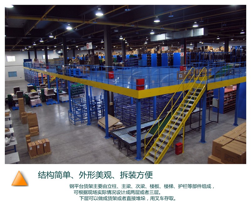鋼制平臺(tái)貨架很多時(shí)候又稱為:?閣樓貨架, 多層貨架。鋼制平臺(tái)貨架是在廠房面積有限的情況下采用貨架作為閣樓支撐,并可以設(shè)計(jì)多層(通常2~3層)的存儲(chǔ)貨架,閣樓可以采用樓梯或者液壓升降平臺(tái)做為登高設(shè)施,利用金屬專用樓板作為樓層區(qū)分,每層可以放置不同物品的貨架,貨架結(jié)構(gòu)具有支撐上層樓板的作用。適用于庫(kù)房較高、存儲(chǔ)量大的倉(cāng)庫(kù),廣泛應(yīng)用于汽車、電子、機(jī)械等領(lǐng)域。? ? &nbs